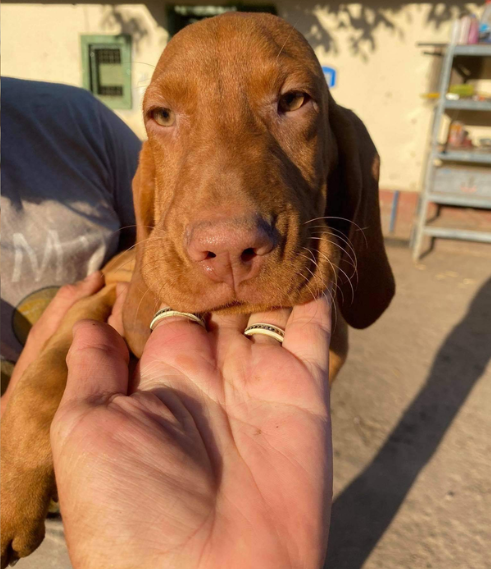Ondertussen-op de avond zelf van alle meelevers veel berichtjes. Is hij er al? Weet je hoe laat hij komt? Ook van de dames van de Vizla herplaatsing in de speciaal aangemaakte app. De bus arriveert. De deur gaat open en onze volwassen zoon kruipt de bus in en haalt onze Obi samen met de bestuurder uit de bus. Goed aangelijnd want we zijn als de dood dat hij er vandoor gaat. Wat een blijheid als hij de Brabantse grond onder zijn pootjes voelt en ons ziet. Alle angsten verdwijnen want hij vindt ons leuk lijkt het en wij hem ook.
