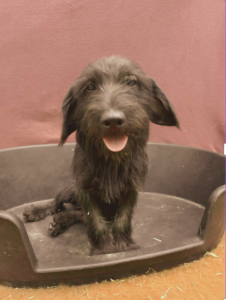 Deze zwarte kruising draadhaarvizsla/tekkel is bij Ilidko gekomen omdat niemand hem wilde: Geboren in een boerderij. Daar moest hij met zijn zusje weg. Een dierenvriend opgehaald en naar Ildiko gebracht.